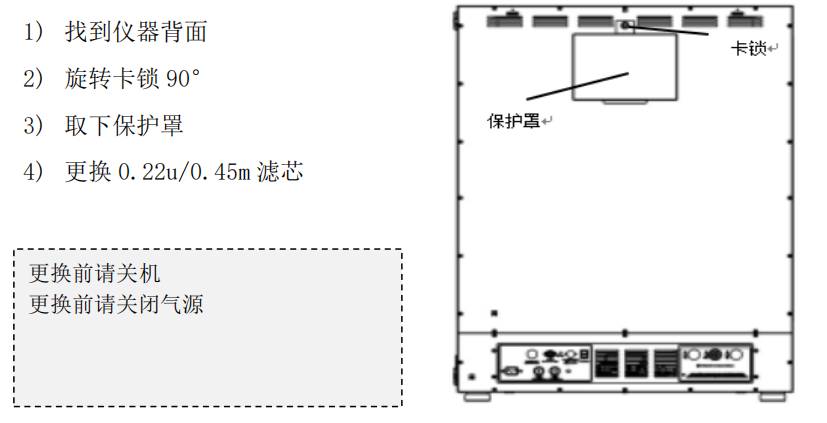 2. 仪器内部有微型过滤器,建议使用 1-2 年更换一次;
