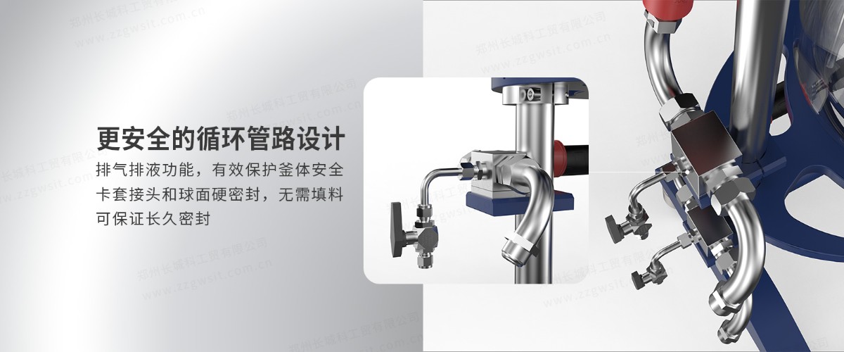 冷却循环系统和真空泵是旋转蒸发系统中必不可少的外围设备。除了较高的密封性外,影响蒸发效率的三个主要参数是:加热锅温度、真空度和冷却循环系统温度。准确地设置这三个参数,可实现理想效率的蒸发。